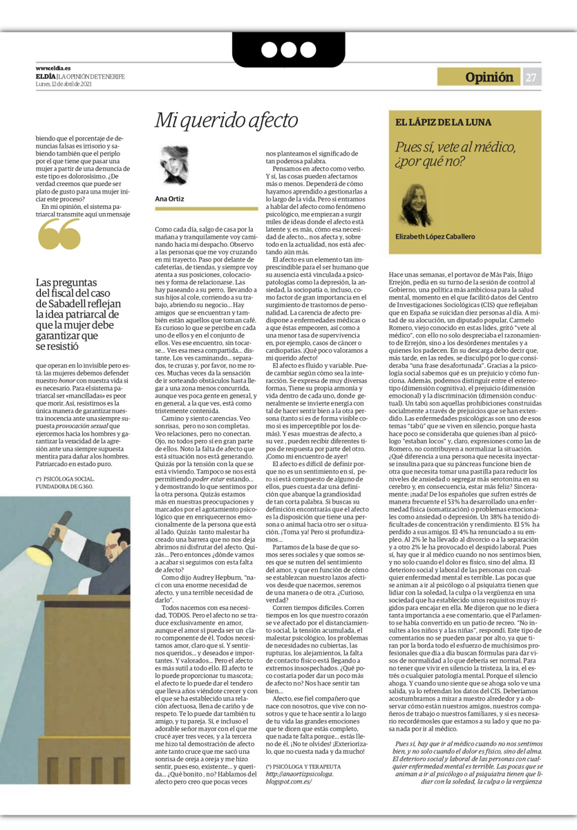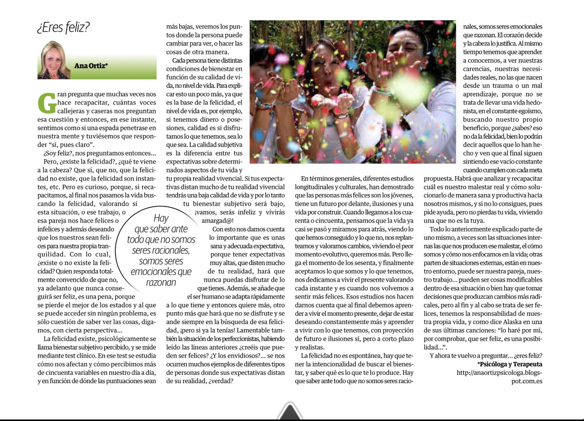 La figura del psicólogo se ha tratado como la de un loquero, tiene mala imagen, aunque no tanta últimamente, quizás oíste de una mala experiencia de alguien, incluso si vamos, lo ocultamos, ¿por qué? Porque se nos ve débiles, porque ir a un extraño a contar tus intimidades… ¿crees que no ayuda? Estamos en una sociedad donde prima el estar bien, ser felices y debemos poder con todo. Pues no. No es así. Los tiempos cambian. Al igual que existen mejoras en otros aspectos, esta época también busca estar mejor de forma interna. ¿Qué tiene de malo ir a terapia? La elección del terapeuta es importante, crucial. Si vas y no te convence, ¡vete a otro! Acaso, ¿no haces lo mismo con otros profesionales?, o incluso, ¿con otras cosas?